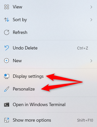 Right-clicking or pressing-and-holding on the desktop opens a contextual menu. Click or tap on Display settings or Personalize to open Settings.