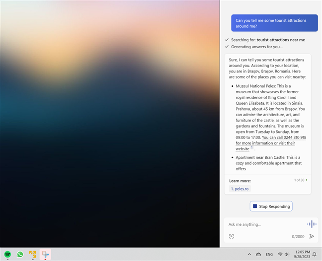 Of course, the answers you’ll be getting depend on what you’ve asked Copilot. For instance, if you want to find out details about a place, Copilot will give you information, links, photos, and maybe even a map.