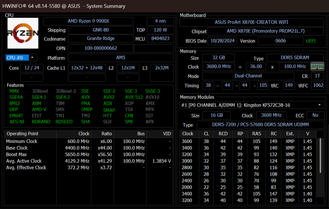- Memory: Kingston FURY Renegade DDR5-7200 32GB
